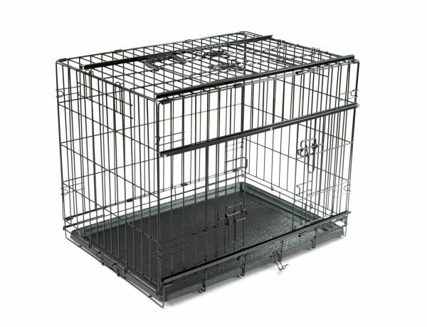 Met een metalen draadkooi kunt u uw hond veilig transporteren. De kooi kan ook binnen gebruikt worden als rustplaats. Uitgerust met een stevig handvat.