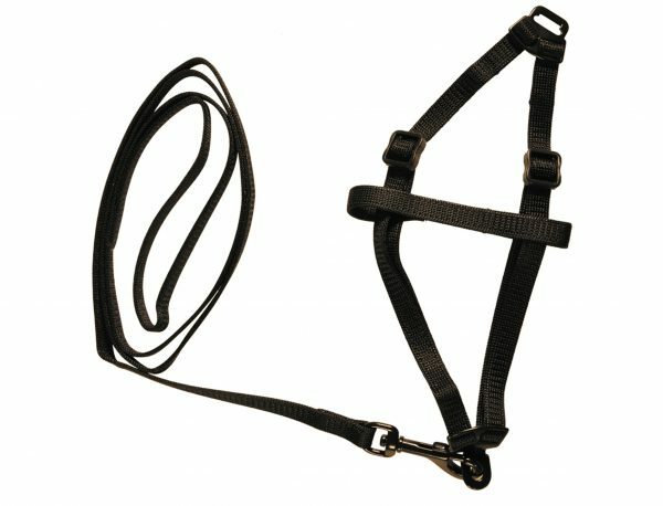 De leiband-harnas is makkelijk verstelbaar en sluit zich perfect aan het lichaam van uw konijn aan.