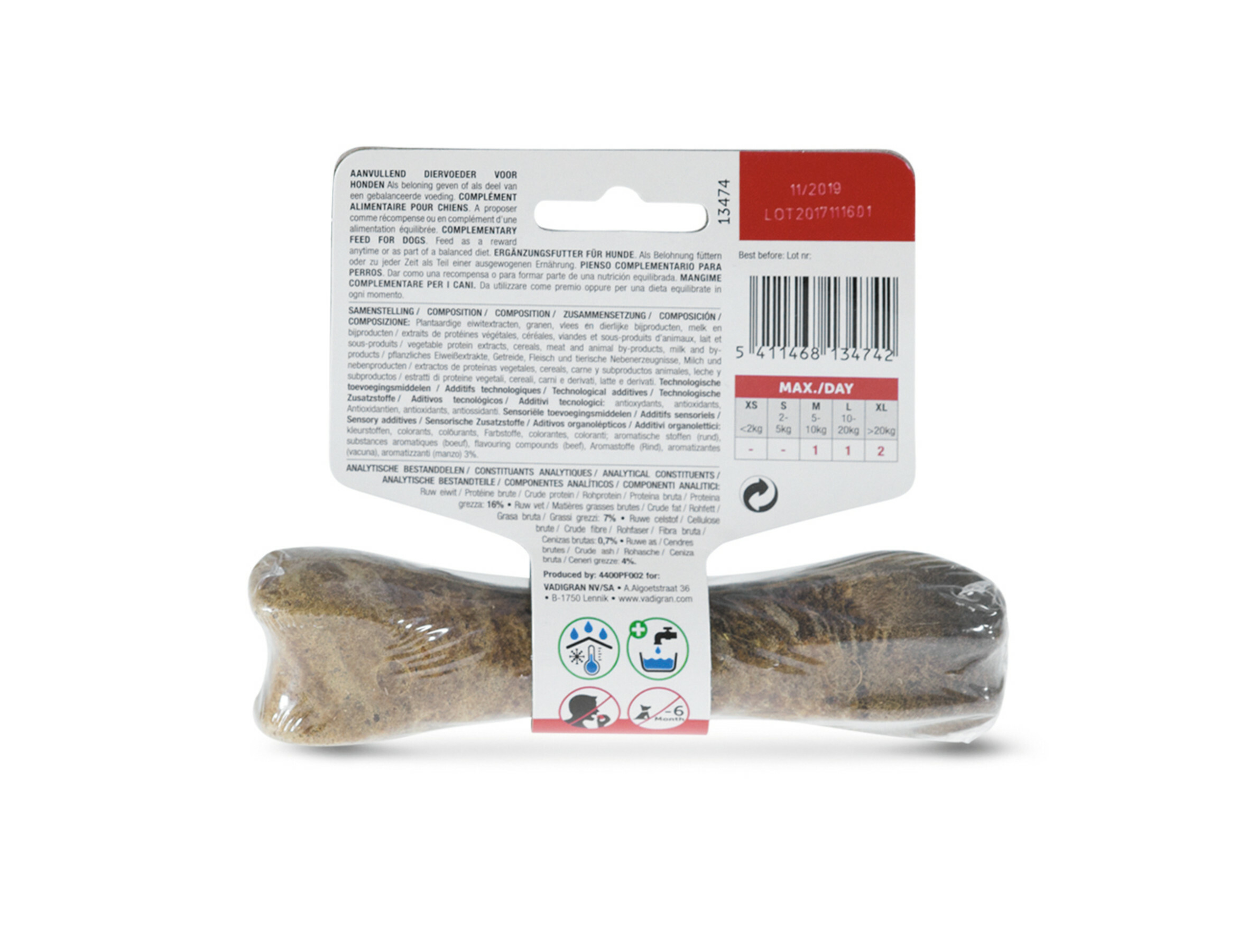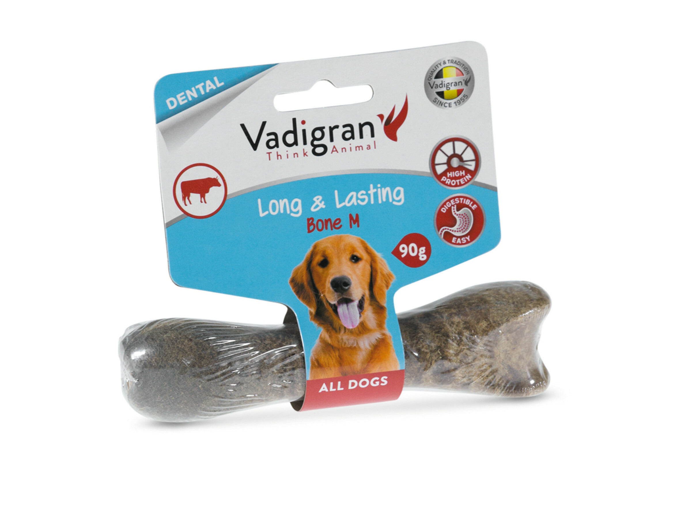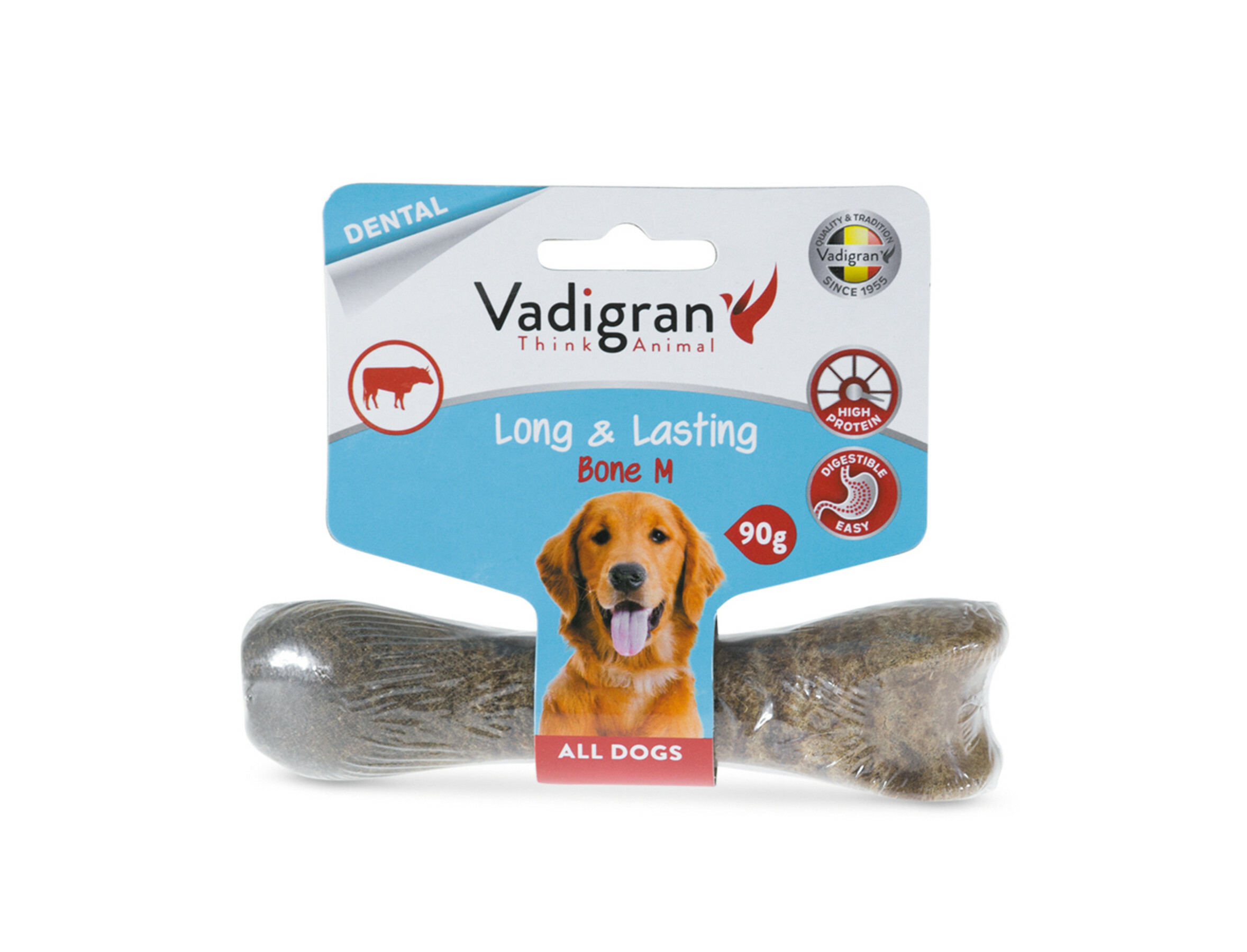 De geperste kauwbotten van Vadigran Long & Lasting zijn heerlijke en gezonde snacks met rundsmaak. Ze bevatten een hoger eiwittengehalte, waar de hond behoefte aan heeft.Het gepest bot is licht verteerbaar en is ook uitstekend voor de mondhygiëne. Het helpt om tandsteen te voorkomen, verstevigt de kaak en draagt bij tot de reiniging van de tanden en het tandvlees.Deze smaakvolle snacks stimuleren je hond om te spelen en te kauwen. Het is belangrijk om de hond veel plezier te bezorgen, het houdt hem bezig en vermijdt dat hij zich zal gaan vervelen.