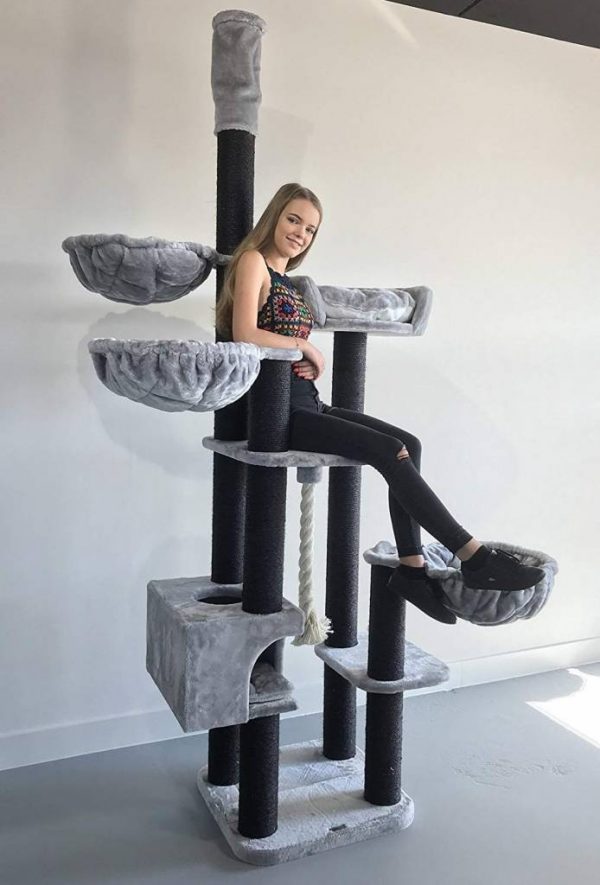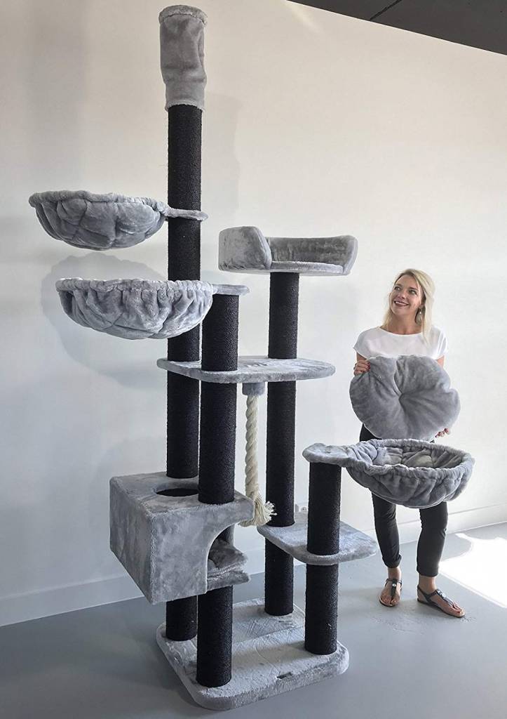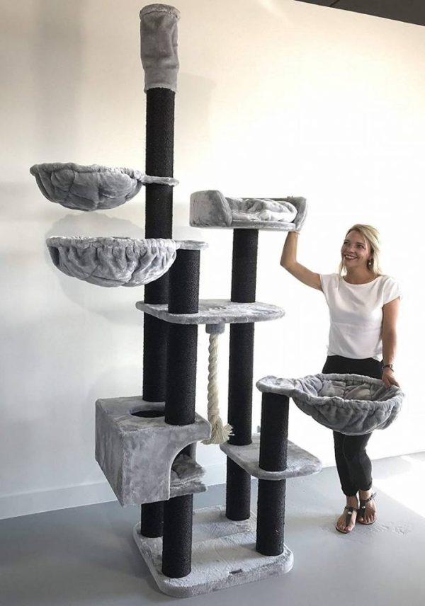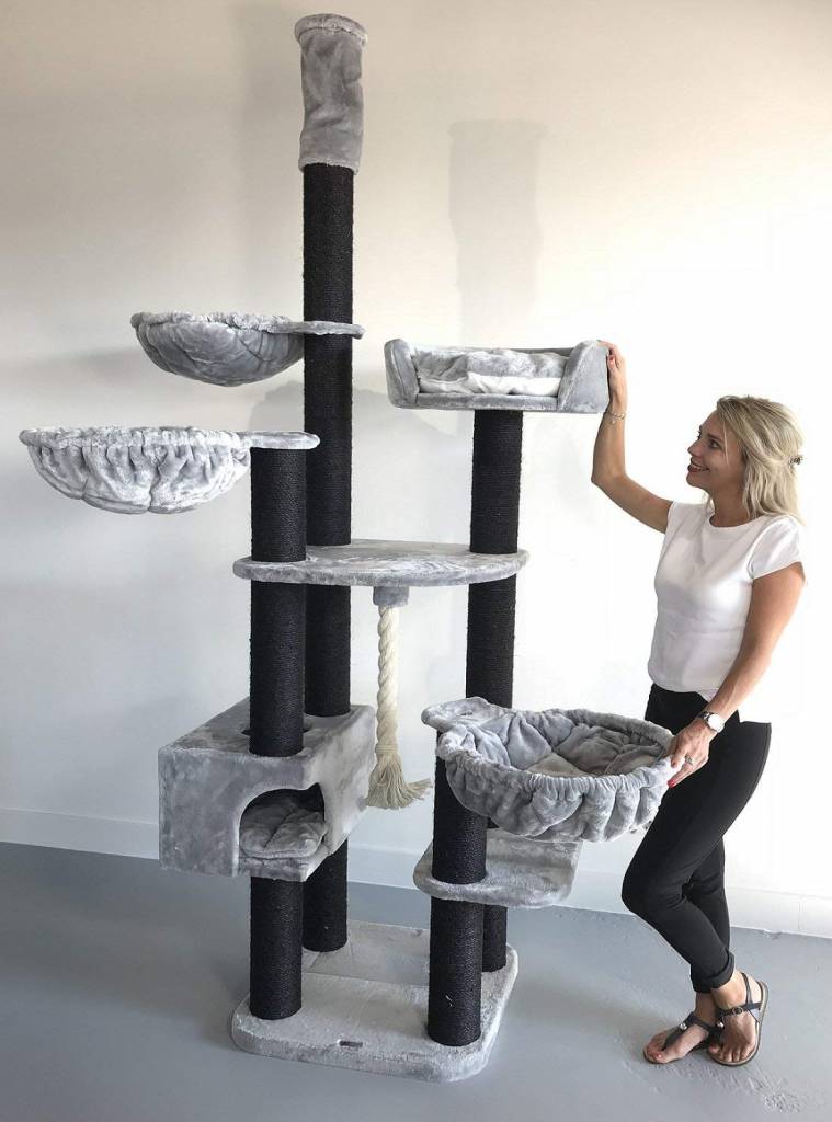 Krabpaal Catdream de Luxe Blackline Light Grey met 54KG is een van de stevigste krabpalen in de markt, door de meest stabiele opbouw met 4 cm dikke bodemplaat en 4 dikke 12cm sisalpalen die naar boven gaan.