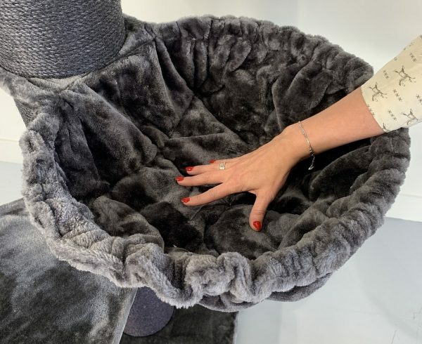 Hangmat: draaibaar en 45cmcm diameter. Getest tot een draagkracht van 20kg. Doorgestikt en gewatteerd.