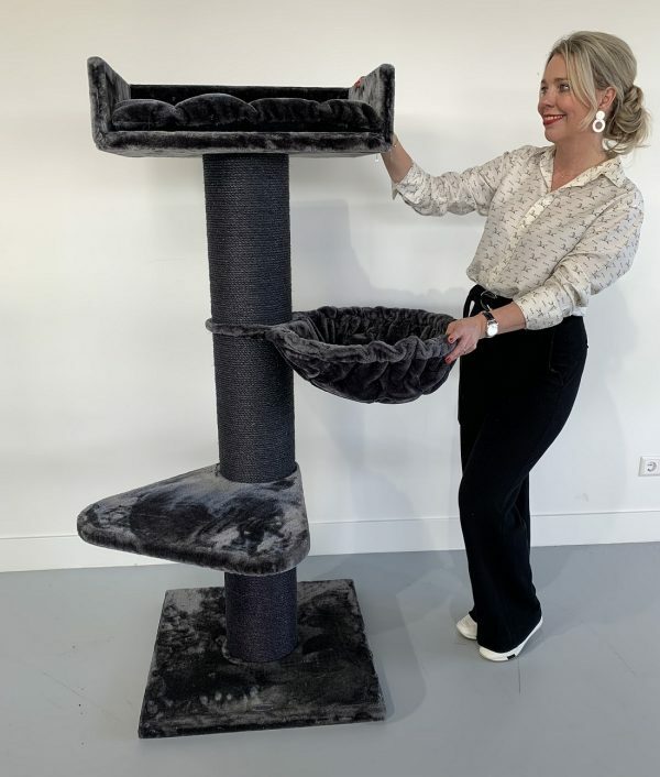 Deze compacte krabpaal heeft ruim aanbod van ligplaatsen voor uw kat. Een heerlijk ruime ligbak, comfortabele hangmat en een groot (55x55cm) ligplateau. De krabpaal heeft maar liefst 20cm dikke sisalpalen en de onderste sisalpaal is met 4 schroeven in de bodemplaat gemonteerd voor maximale stabiliteit, waardoor deze zeer stevig en stabiel is dus ook geschikt voor meerdere katten tegelijkertijd.