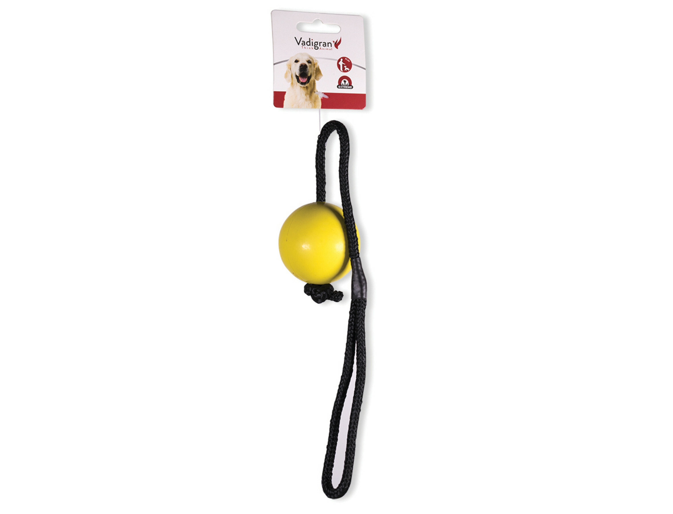 Speelgoed hond TPR bal touw Yellow Vanilla 6,3cm