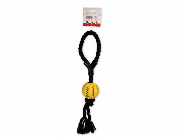Speelgoed hond TPR bal touw Yellow Vanilla 6,3cm