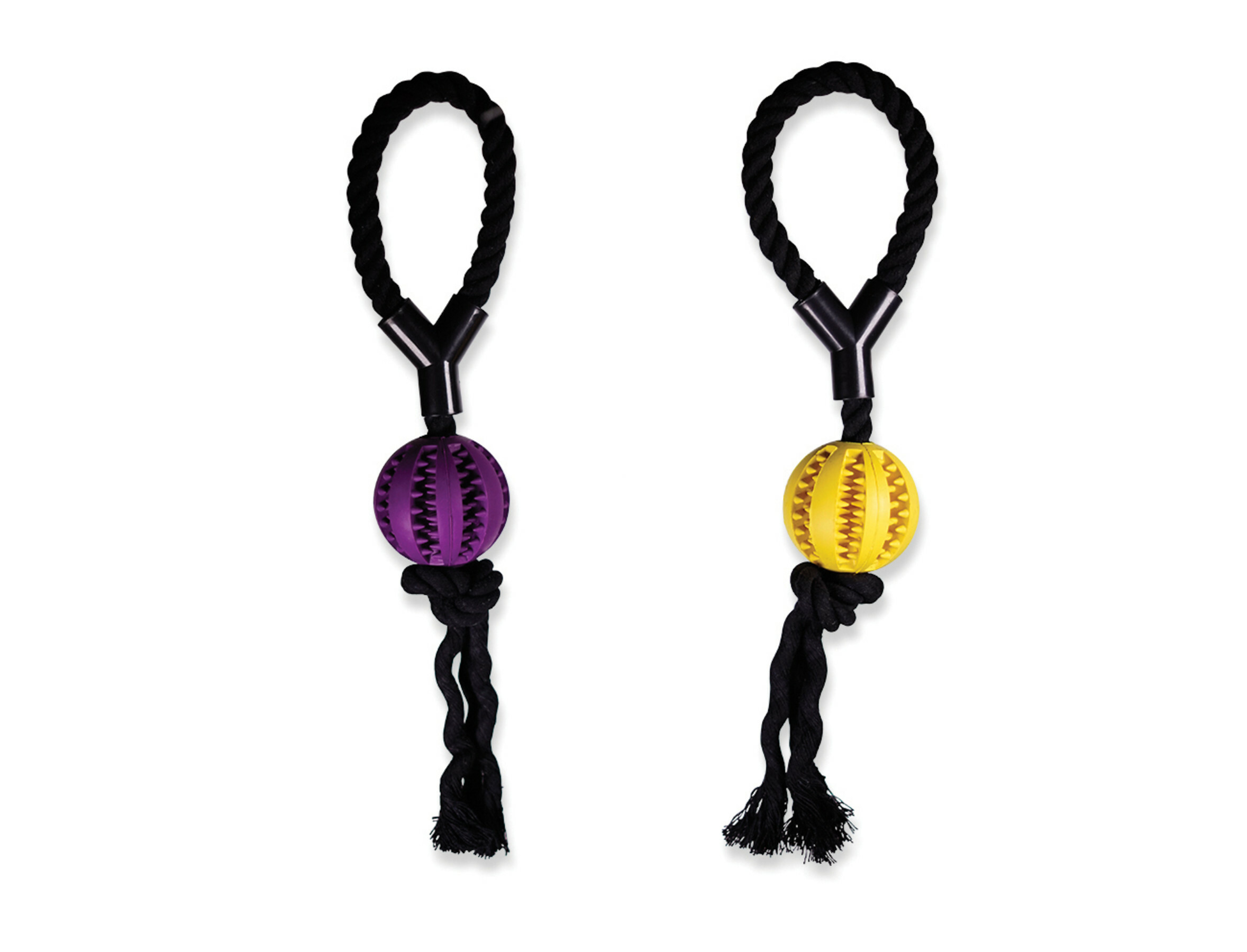 Speelgoed hond TPR bal touw Yellow Vanilla 6,3cm