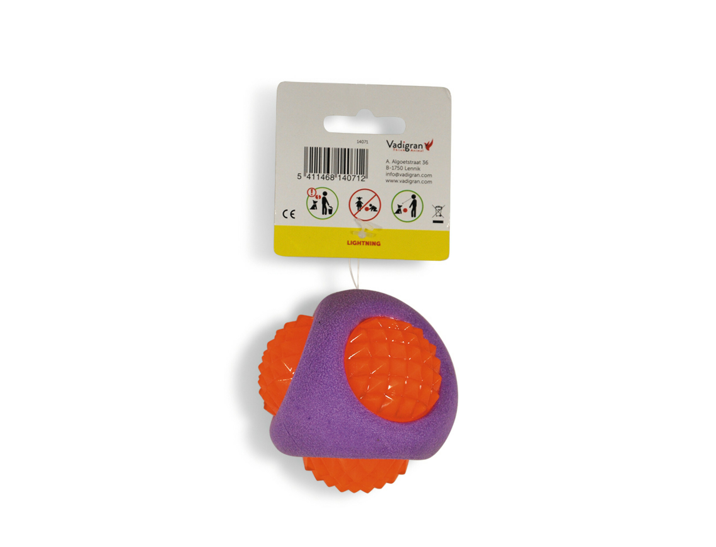 Stervormig speeltje voor honden in TPR-schuim, een zacht, soepel maar zeer resistent materiaal met in het midden een lichtgevende bal die oplicht als hij een hard oppervlak raakt.Het door de bal verspreidde licht trekt de aandacht van het dier en maakt het mogelijk om ook in het donker met het speeltje te spelen.De vorm van het speeltje is ideaal om mee te gooien , het vliegt erg goed.