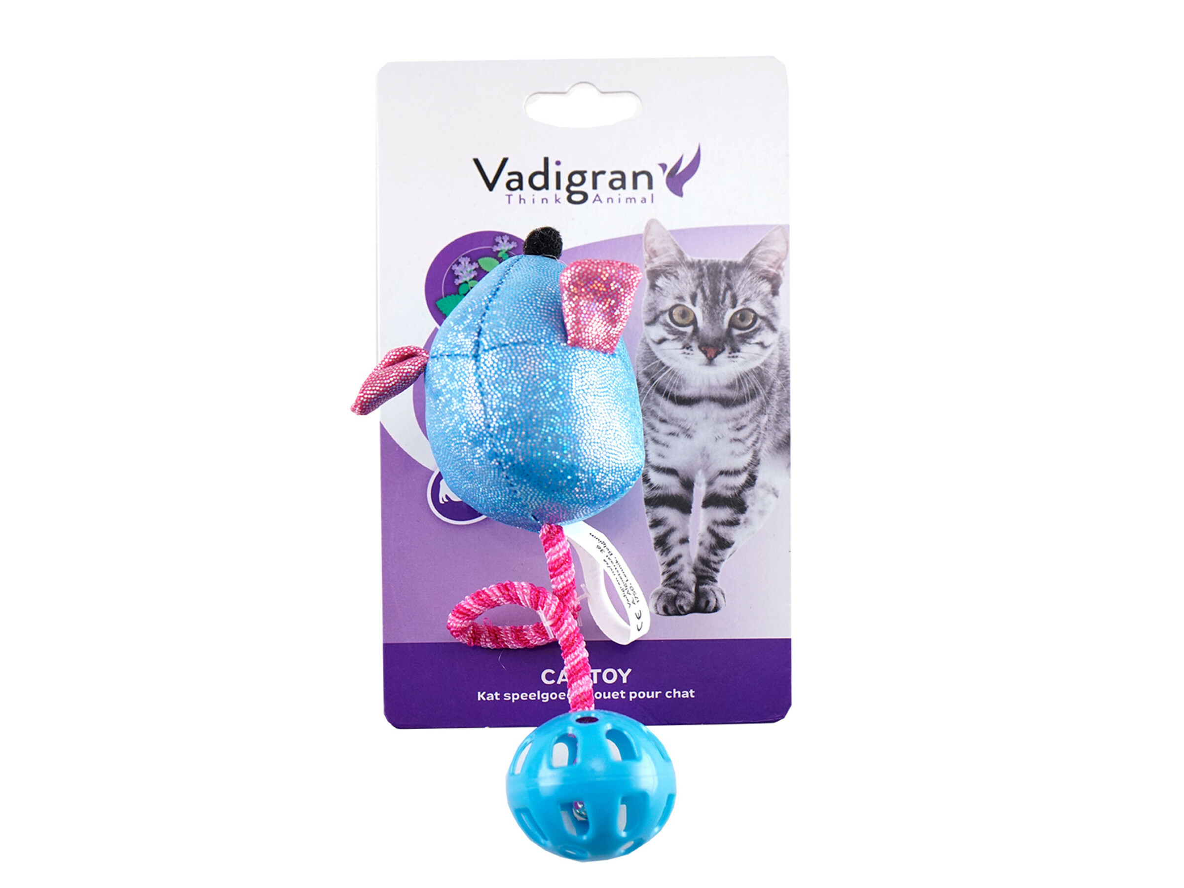 Speelgoed kat muis met rekkerbal blauw 7cm