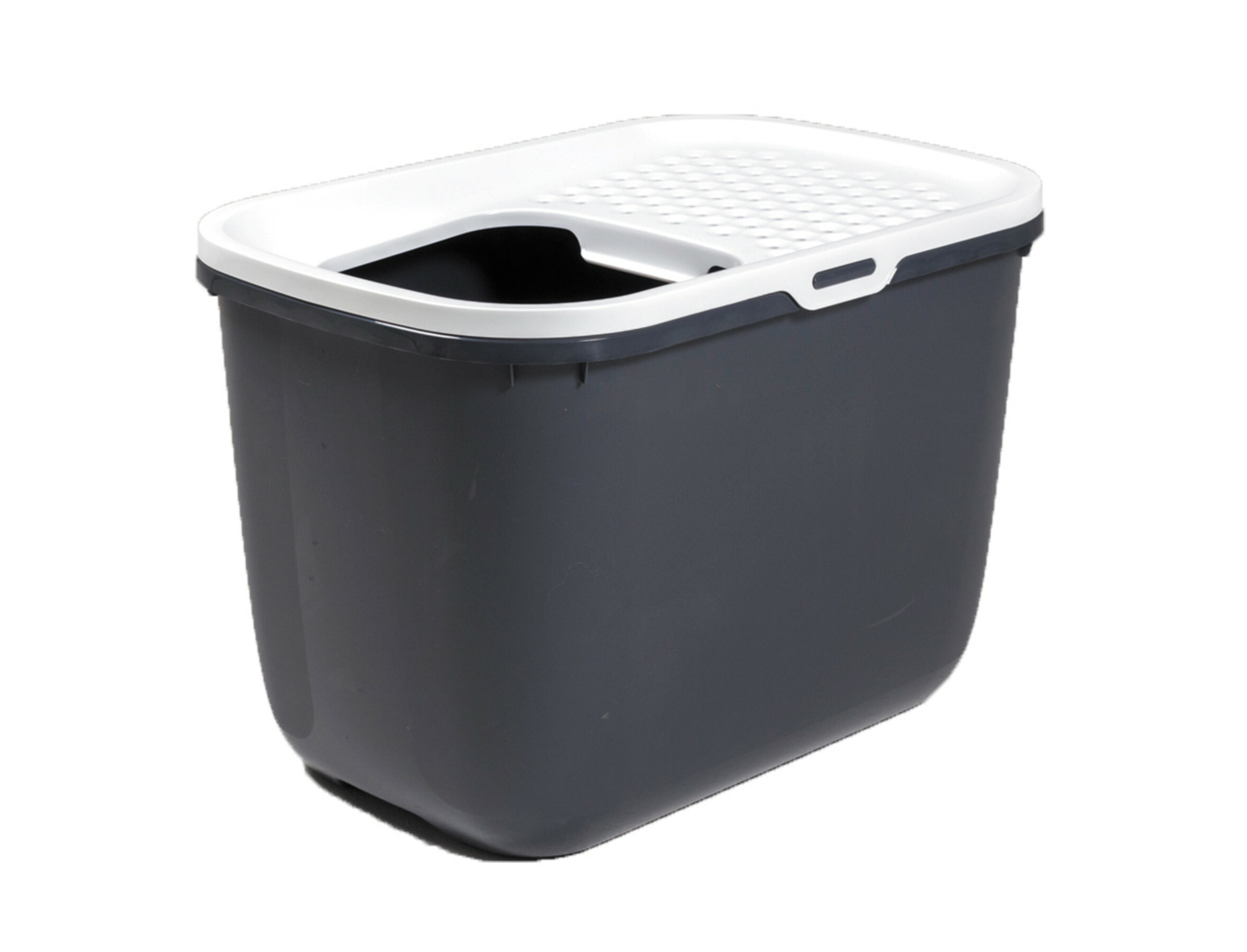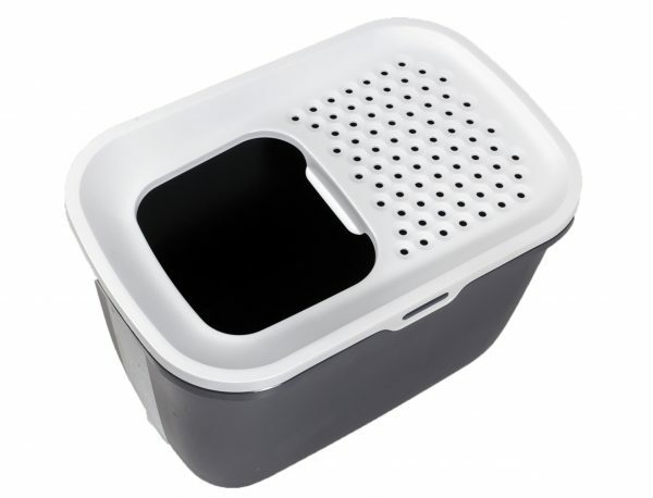 Moderne kattenbak met opening aan de bovenkant. Geschikt voor katten die achteruit stappen tijdens het plassen of voor katten die graag hun urine verspreiden.