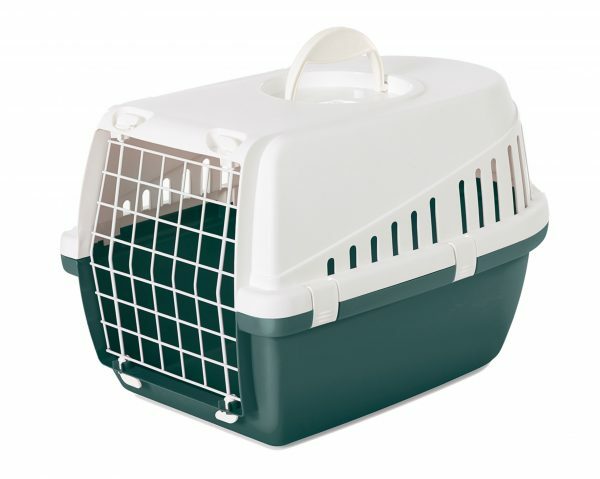 De Trotter Nordic transportbox heeft vooraan een deur van gecoate metaaldraad. Dankzij het handvat kun je je huisdier gemakkelijk meenemen.